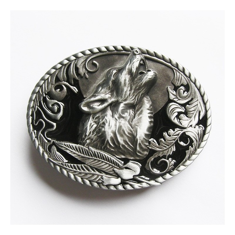 boucle de ceinture ( ceinturon) haute qualité nécessite une ceinture avec fixation rapide toutes nos boucles acceptent des ceintures jusqu'a 4cm de large modele en metal ou alliage tres solide boucle de ceinture avec loup sur fond noir dimension 9 de large et 7 de haute environ 1cm d'épaisseur
