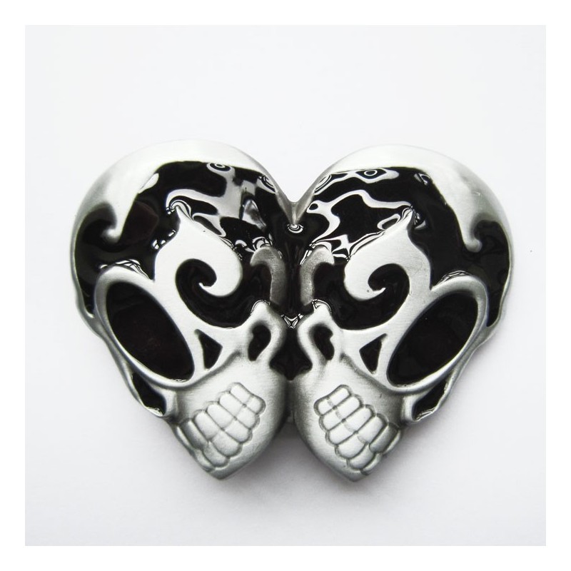 boucle de ceinture 2 crane tribal noir rock roll biker homme