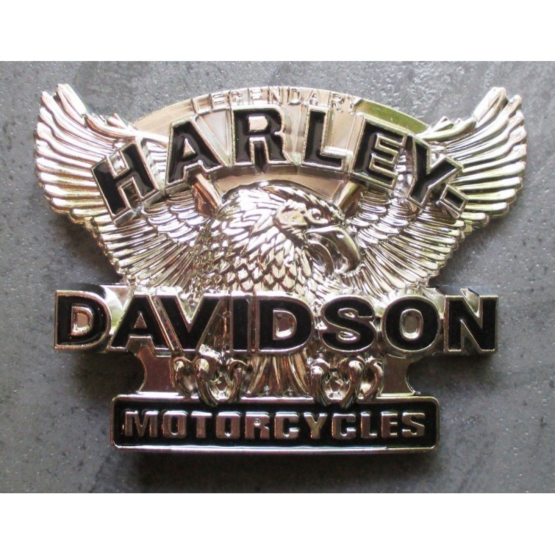 Boucle de ceinture harley davidson aigle et inscription en noir .