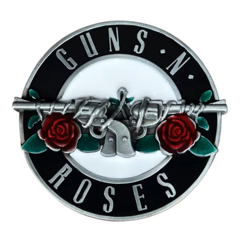 boucle de ceinture gun 's & roses de 8 cm de diamètre pour se modèle et environ 6 d'épaisseur + le relief sur les pistolet et les roses.