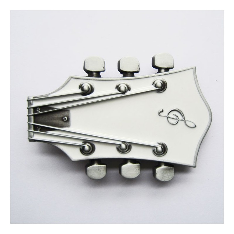 boucle de ceinture en forme de manche de guitare, couleur blanche .